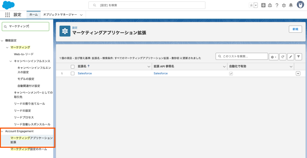 - [Account Engagement] > [マーケティングアプリケーションの拡張]を選択