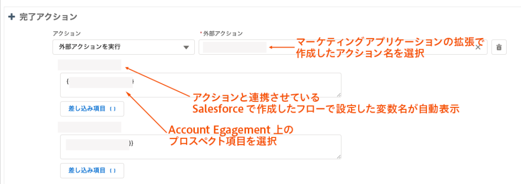 - [完了アクション] > [アクション]で[外部アクションを実行]を選択