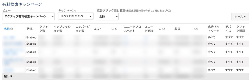 - Google広告側に設定している「キャンペーン」別で以下の確認が可能