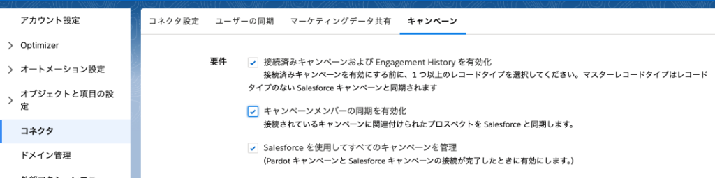 参考:「Account Engagement キャンペーンと Salesforce キャンペーンを接続」