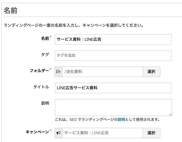 - キャンペーンは選択必須なので、作成前にキャンペーンを作っておくこと
